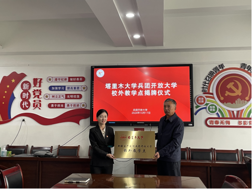 10月17日上午,郭宏伟一行来到兵团开放大学座谈交流并举行高等学历继续教育校外教学点授牌仪式,受到兵团开放大学直属教育学院院长马慧燕等领导的热情欢迎。