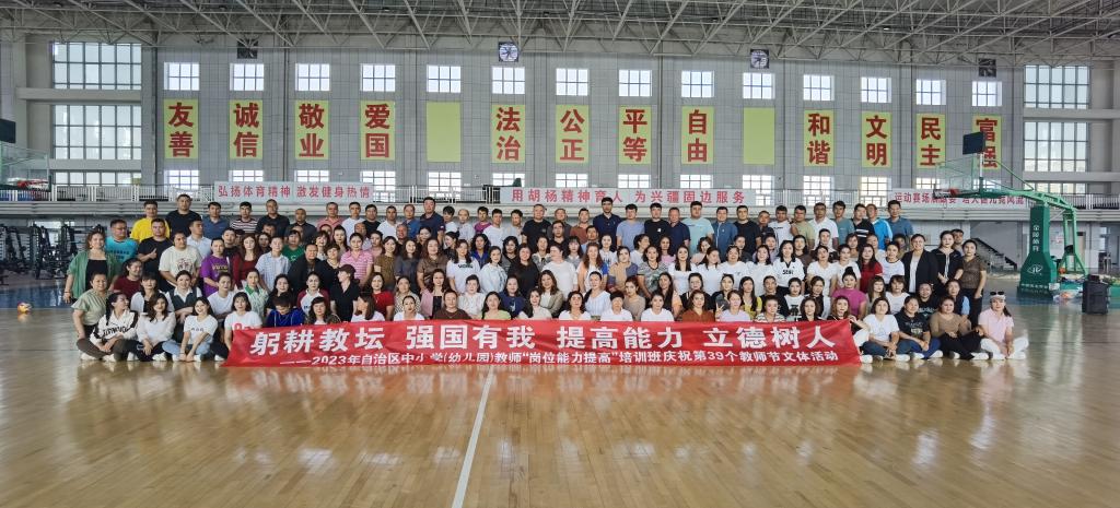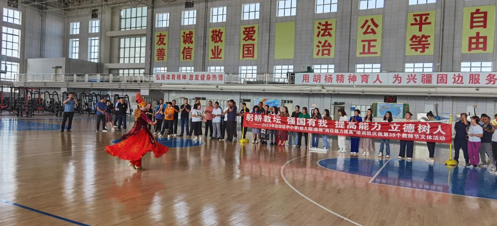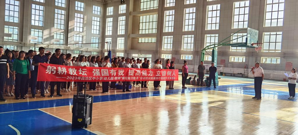 在教师节到来之际,为了更好地增进学员间的情感交流,激发学员们的学习热情,betway西汉姆联官网于9月9日在betway西汉姆联官网风雨操场举行了“躬耕教坛、强国有我、提高能力、立德树人”庆祝第39个教师节文体活动。学院全体教职工、“2023年自治区中小学(幼儿园)教师岗位能力提高培训班”全体学员共同参加此次活动。学院党总支书记阿不都卡迪尔·艾海提致辞,为全体师生送上节日的祝福,暖暖的话语让参训学员们感受到了betway西汉姆联官网的关心与关爱。